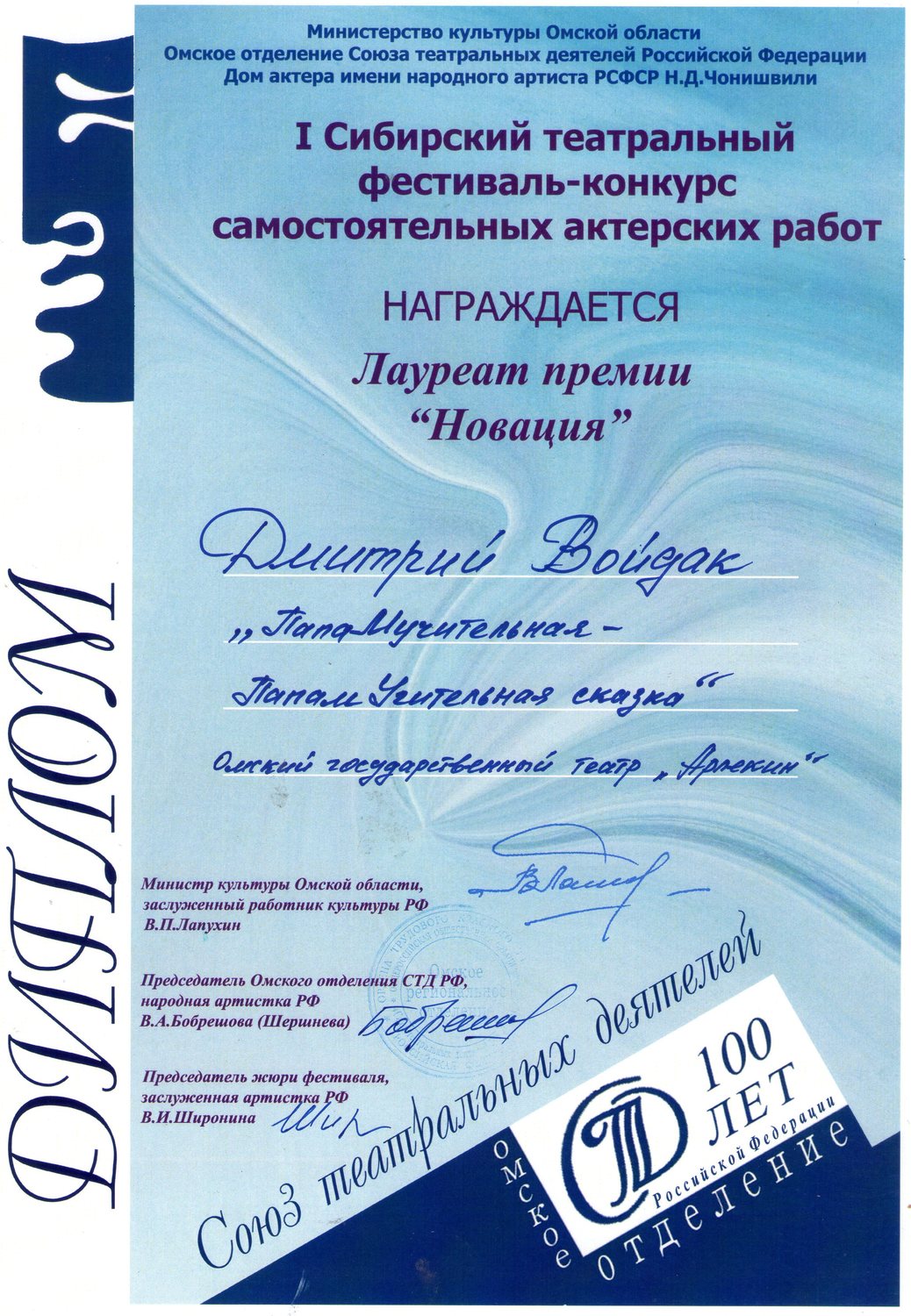 -- Лауреат премии "Новация" за авторский моно спектакль "папаМучительная-папамУчительная сказка";