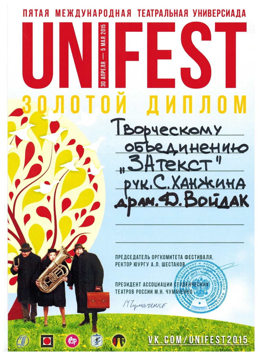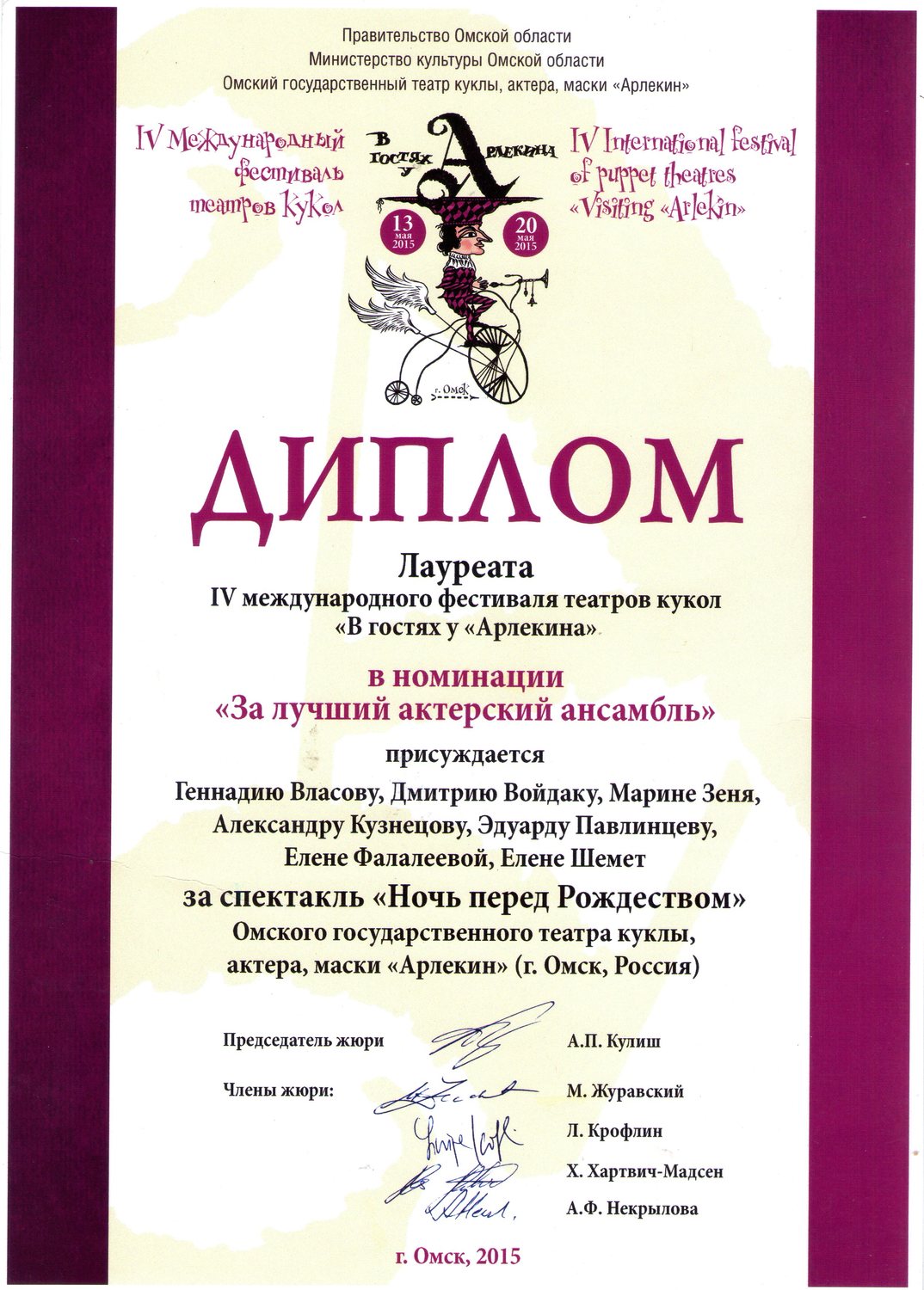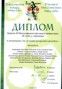 -- Лауреат премии "За лучший актёрский ансамбль" на международном фестивале в г. Ломжа (Польша);