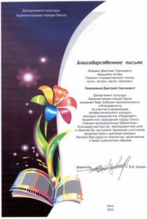 -- Лауреат премии "Гран-при фестиваля" на международном фестивале "Золотая магнолия" г. Шанхай (Китай) 2010 и 2016 гг;